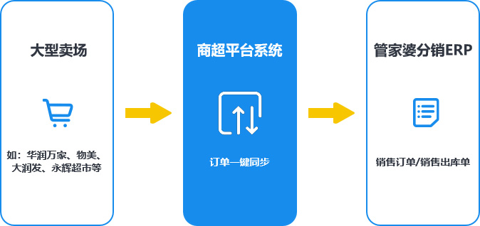 通過商超平臺(tái)系統(tǒng),一鍵把大型商超連鎖的訂單導(dǎo)入到管家婆分銷ERP中,生成銷售訂單或銷售出庫單,降低人力成本,提升效率。